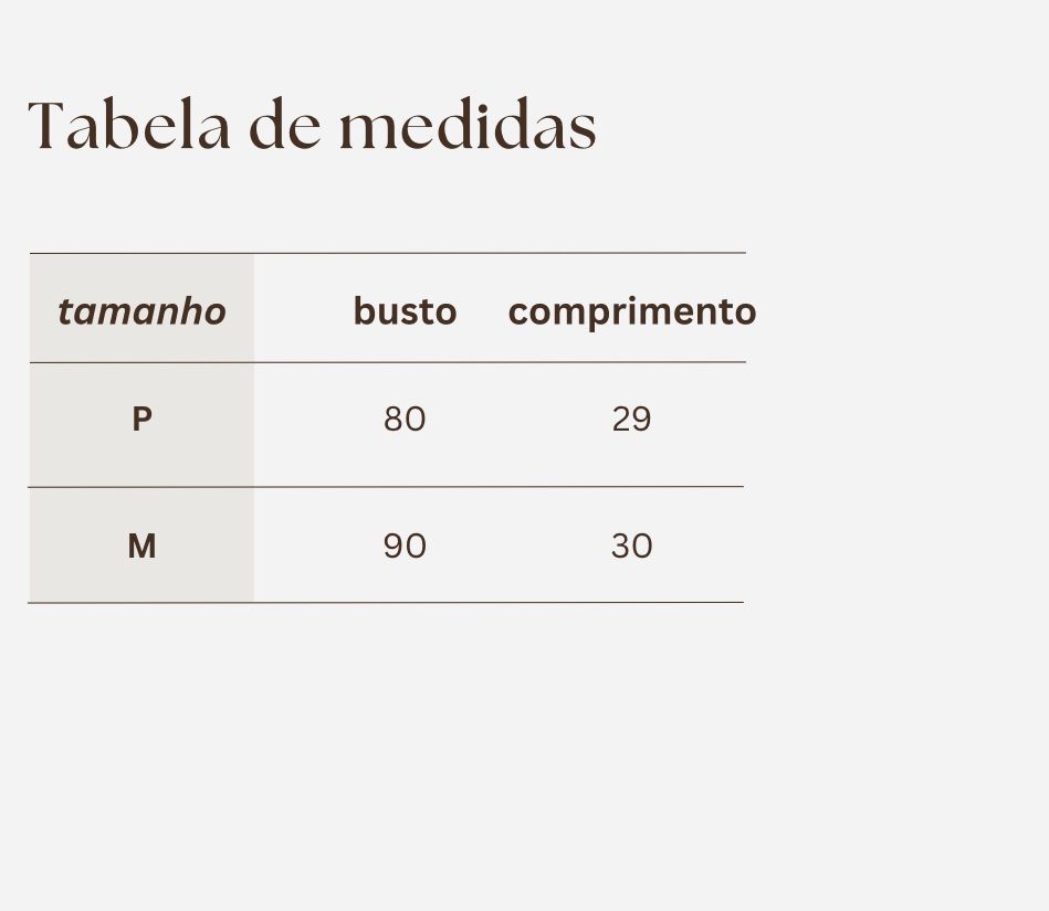 Medidas da modelos: Cintura 72cm - Busto 88cm - Quadril 94cm - Altura 1.64cm.