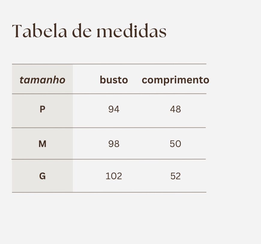 Medidas da modelos: Cintura 72cm - Busto 88cm - Quadril 94cm - Altura 1.64cm.