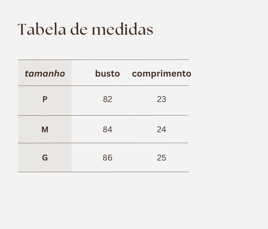 Modelo vestindo tamanho P.