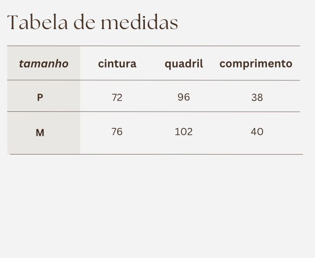 Medidas da modelos: Cintura 72cm - Busto 88cm - Quadril 94cm - Altura 1.64cm.
